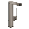 Karral állványos magas mosdó csaptelep kihúzható zuhanyzóval. Csiszolt Hard Graphite színkivitelben. A csaptelep térfogatárama 5,7 liter / perc. A kar 23,1 cm magasan van.