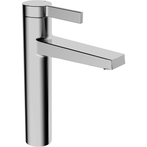 Karral állványos magas mosdó csaptelep leeresztőszelep nélkül. Króm kivitelben. A csaptelep térfogatárama 6 liter / perc. A kar 17 cm magasan van.