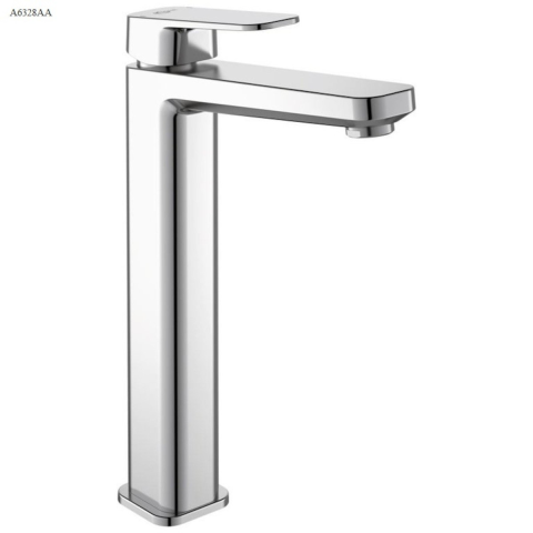 Karral állványos magas mosdó csaptelep leeresztőszeleppel. Kerekített kivitelben. Króm kivitelben. A csaptelep térfogatárama 5 liter / perc.