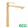 Magas karos mosdókagyló-keverő kifolyó nélkül, arany kivitelben. Az átfolyási sebesség 8 liter/perc. A keverő magassága 31,2 cm. A kar 26,1 cm magas. Fényes színben.