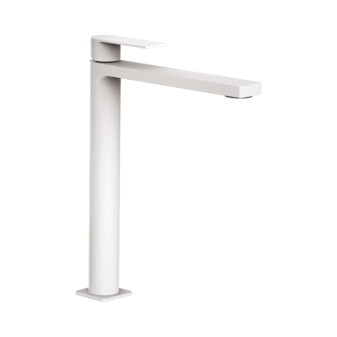 Magas karos mosdókagyló-keverő kiöntő nélkül, fehér matt kivitelben. A keverő magassága 30,7 cm. A kar 26,4 cm magas. Matt kivitelben.
