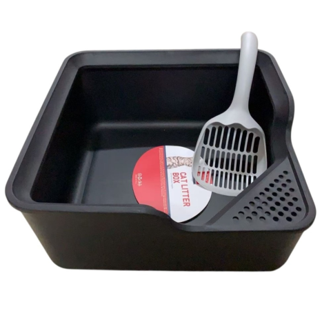 1 kép Magasfalú macska alomtálca szuperprémium lapáttal - Fekete