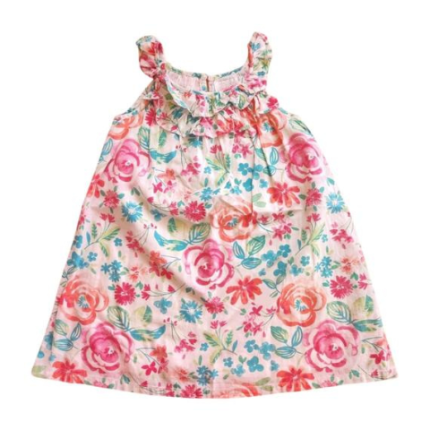 Ez a Maggie & Zoé rózsaszín virágmintás kislány nyári ruha egy nagyon kényelmes darab, amely kiváló választás hétköznapi viseletnek és alkalmakra is, Izgalmas és vidám mintája, valamint a játékos fodrok nagyon feldobják, amely