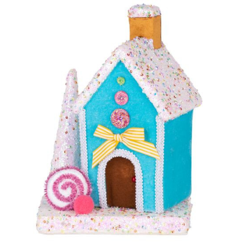 1 kép MagicHome Candy Line karácsonyi dekoráció, kék házikó, 19 x 27 cm