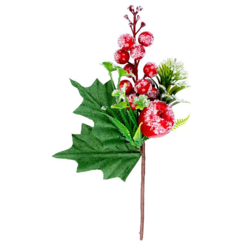 1 kép MagicHome karácsonyi ág, bogyókkal és almával, piros, fagy hatás, 22 cm