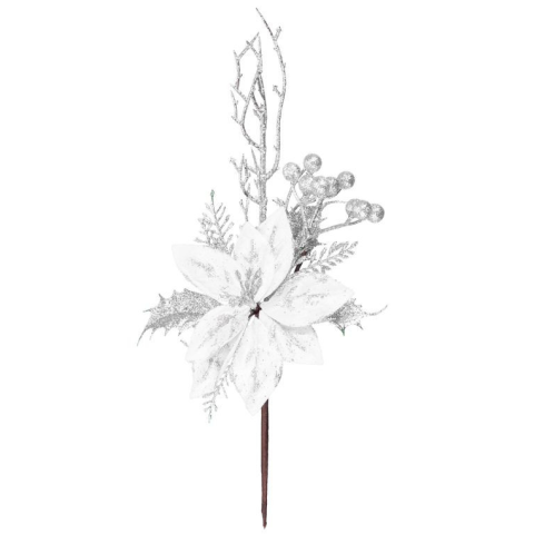 A MagicHome karácsonyi ág virággal dekoráció teljessé teszi a karácsony varázslatos hangulatát otthonában. Színe ezüst. 27 cm magas.