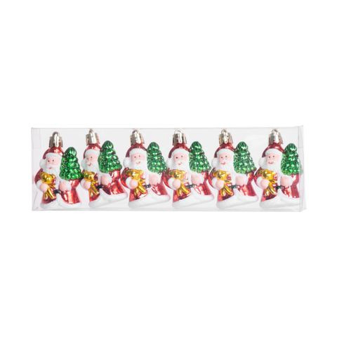 A díszkészlet a karácsonyfa ünnepi díszítésére szolgál. 6 db 6 cm méretu Mikulásból áll. A díszek muanyagból készültek.