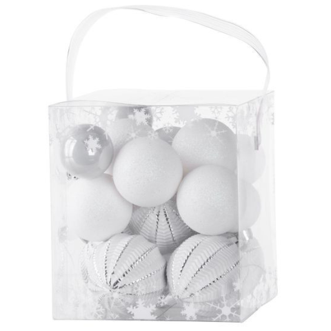 Tedd különlegessé karácsonyfádat ezzel a 31 darabos fehér-ezüst karácsonyi gömb szettel, amely hagyományosan elegáns és modern hangulatot kölcsönöz otthonodnak. A fehér és ezüst színek kombinációja időtlen, kifinomult megjelenést ad, amely bármilyen stílu
