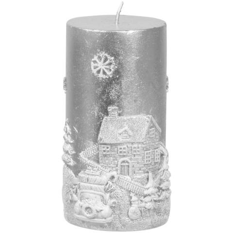 1 kép MagicHome karácsonyi gyertya, 7 x 12,5 cm, ezüst, tájképpel