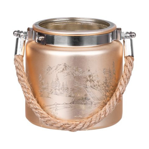MagicHome karácsonyi gyertyatartó,10 x 10 cm, arany, tájképpel, zsinórral