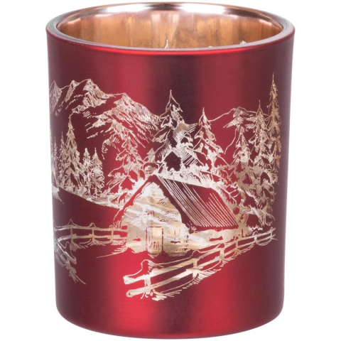 1 kép MagicHome karácsonyi gyertyatartó, 6 x 7 cm, piros, tájképpel