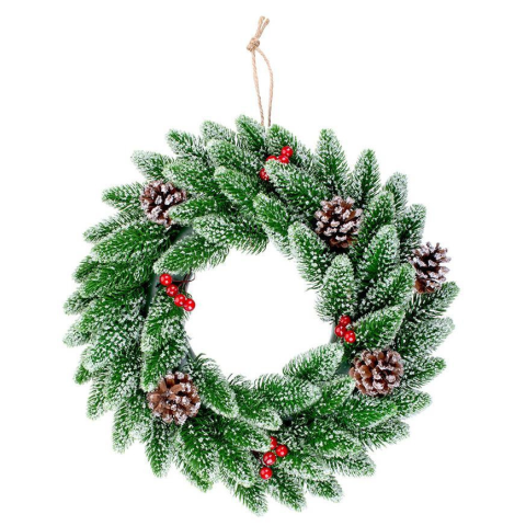 MagicHome karácsonyi koszorú, bogyókkal, natúr, havas, 33 cm