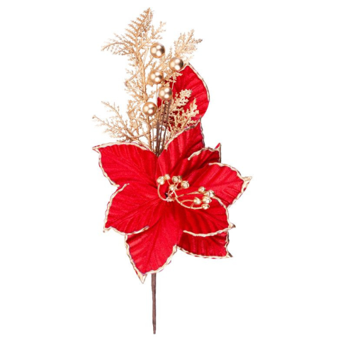 Tedd fel kérdésed a(z) MagicHome karácsonyi virág, Poinsettia, piros, arany szegéllyel, szár, virágméret: 31 cm termékről!