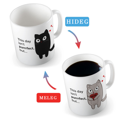 A mágikus cicás bögre nem csak praktikus ajándék, ugyanakkor nagyon vidám is, mely minden nap mosolyra fakaszt. Próbálgasd bátran, milyen italtól, milyen színekben pompázik a cica!