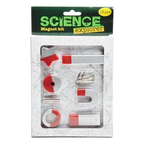 Mágnes 6 darabos készlet Figyeld meg a mágnesesség erejét! A Mágnes 6 darabos készlet piros - ezüst színű, patkó, rúd, csillag és karika formájú mágneseket tartalmaz, amikkel a mágneses hatást vizsgálhatod Az északi pólus pirossal, a déli ezüst színne