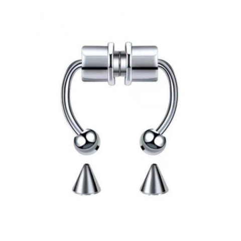 Könnyen viselhető mágneses hamis orrkarika. Stílusos, fájdalommentes megoldás, cserélhető végekkel, bőrbarát anyagból. Tökéletes álpiercing kísérletezéshez