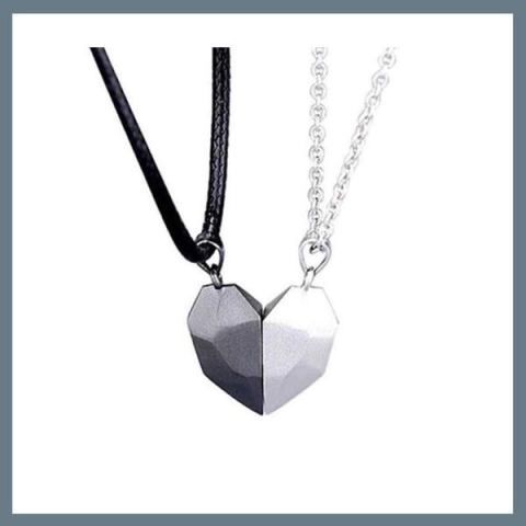 Mágneses nyaklánc pároknak CC1Ideális ajándék szerelmesek számára. Két nyakláncot tartalmaz, mindkettő medálként egy fél szívvel. A két fél összekapcsolódik, hogy egyetlen egészet alkosson – egy szimbolikus ékszer, amely mély érzelmeket fejez ki, és biztosan megérinti azt, aki kapja.KÉT LÉLEK, EGY SZÍVA két mágneses fél szívvel ellátott nyaklánc tökéletesen összeilleszthető, így kifejezve az összetartozást.EGY FÉL MINDENKINÉLAmikor a szerelmesek távo