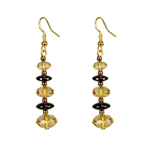 Elegáns, fekete-arany színű mágneses hematit fülbevaló arany színű kiegészítőkkel