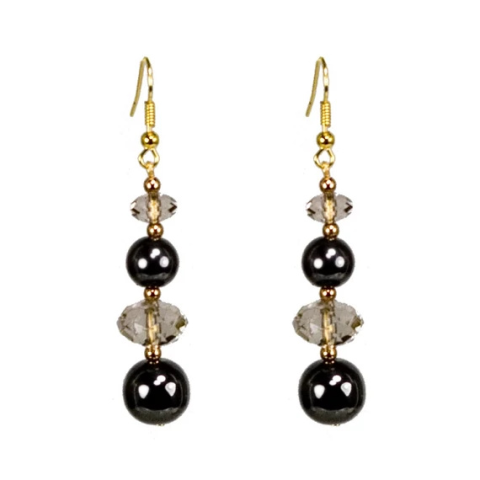 Elegáns, fekete-barna mágneses hematit fülbevaló arany színű kiegészítőkkel