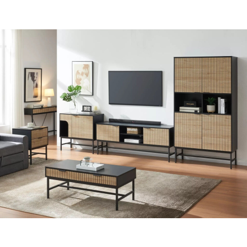 Teljes Mago RTV1 Modern TV Szekrény Laminált Tölgy-Fekete Bordázott Ajtókkal termékleírás