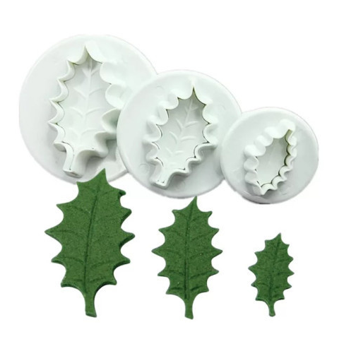 A csomagban 3 darab rugós műanyag magyal levél formájú kiszúró található. Anyaga: műanyag A levelek méretei: Kicsi: 2 x 1 cm Közepes: 3 x 1,5 cm Nagy: 3,5 x 2 cm Mélysége: 0,5 cm.