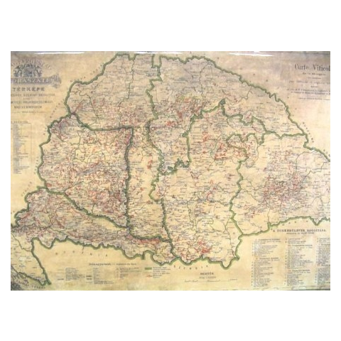 1 kép Magyarország borászati térképe fóliázott falitérkép 1884 év 100x70 cm