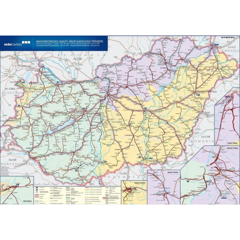 1 kép Magyarország vasút térképe, Magyarország vasúti árufuvarozási térképe fémléccel 120x80 cm