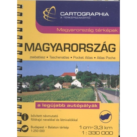 Magyarország zsebatlasz településjegyzékkel, a fontosabb autópályákkal és autóút csomópontokkal, távolságmutatóval és a nemzetközi gépkocsi jelzésekkel._x000D_ _x000D_ _x000D_ Tartalom_x000D_ č Magyarország autótérképe 1:330 000_x000D_ č Balaton és környé