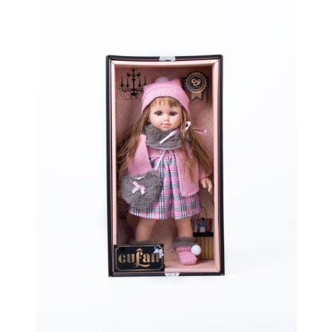 A baba arca és teste műanyagból készült, a ruhái pedig finom kötött anyagból. Gyönyörű, dús hajkoronája és szempillája van, mely minden kislányt lenyűgöz. A baba szeme üvegszerű műanyagból készült, szempillái ragasztottak, így még élethűbb jóbarátja lehet