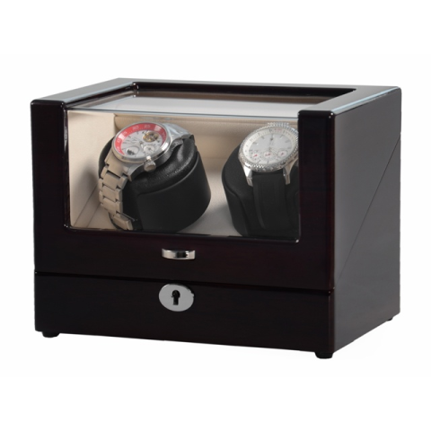 Részletes bemutató videó: Több rétegben lakkozott mahagóni színű, fából készült óraforgató 2 órához. Kialakításának köszönhetően nagy méretű óráknak is megfelel. Belseje bézs színű. A termék hálózatról és elemről egyaránt üzemel. Zárható, kulcs és há