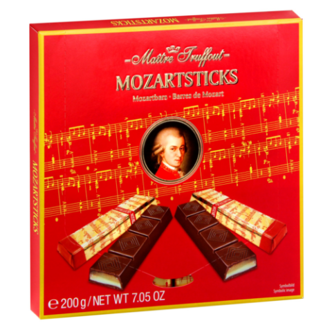 1 kép Maitre Truffont Mozartsticks -marcipán és pisztácia krémmel töltött étcsokoládé táblácskák 200g