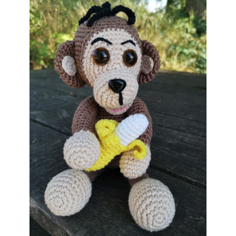 Ez a bájos amigurumi majom figura részletgazdag horgolással készült, nagy gombszemekkel és vidám mosollyal. A karjában tartott banán még játékosabbá teszi, miközben puha anyaga és kedves megjelenése mindenkit mosolyra fakaszt. Majom - amigurumi figura