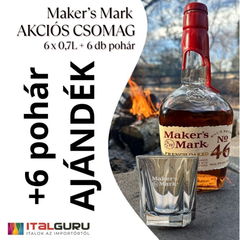 1 kép    Makers Mark AKCIÓS CSOMAG (6*0,7 liter + 6 db pohár)