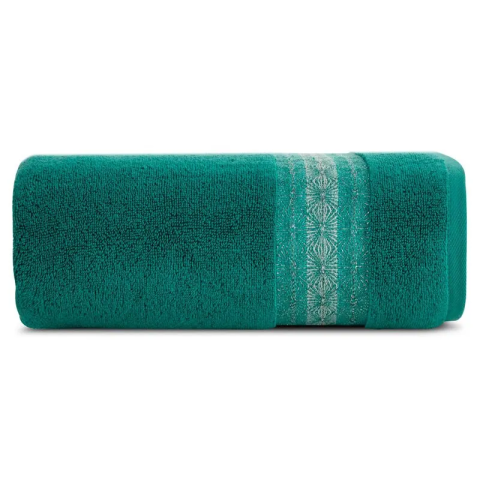 Szín: türkiz Méret: 50 x 90 cm Grammsúly: 500 g/m2 Törölköző anyaga: 100% pamut Díszítő rész anyaga: 61% pamut, 20% poliészter, 19% fényes szál Cikkszám: HS424702