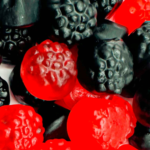 💙❤️ Robbanó gyümölcsíz minden falatban! Puha, zselés édesség, ami a málna és szeder frissességét hozza el neked! 😋🍬 Tökéletes választás, ha egy igazán gyümölcsös, zamatos nasira vágysz. 🎉👌 Élvezd az intenzív ízeket minden egyes falattal!. Összetevők: glükózszirup, cukor, víz, zselatin, szőlőlé koncentrátumból 5%, savanyúságot szabályozó anyag (citromsav), aromák, fényezőanyag (karnaubaviasz), színezékek: E120, E153.. A termék tejszár