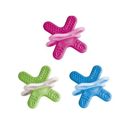 2-es szakasz: -Speciálisan az hátsó fogakhoz fejlesztve, a négy különböző felület számos rágási lehetőséget kínál és gyorsan enyhíti a fogzási fájdalmat. -Extra könnyű, így a kisbabáknak egyszerű kézben tartani. -Az egyedülálló 3D forma fejleszti a babák