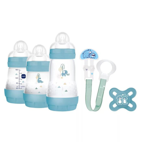 Mam Cumisüveg Ajándékszett, kék, megújult! (5 db/cs) Megújúlt Mam cumisüveg ajándékszett kék színbenIdeális választás újszülött babáknak kezdő szettként A csomag tartalmaz:2 db 160 ml-es Anti-colicos szeleppel ellátott cumisüveget, mely segít megelőzni