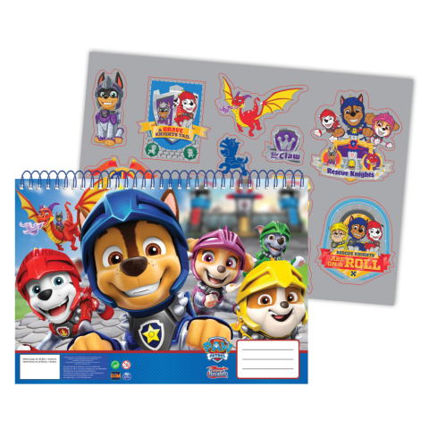 1 kép Mancs Őrjárat Knights A/4 spirál vázlatfüzet 40 lapos matricával