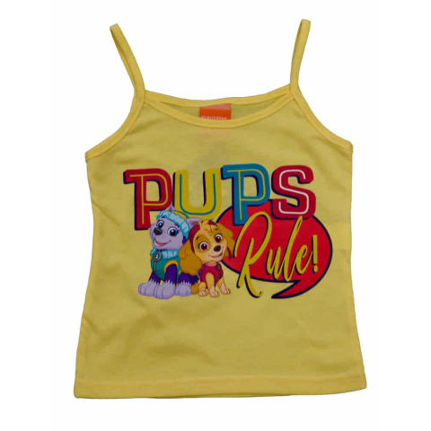 A Mancs Őrjárat mintával díszített kislány spagetti pántos topunk minden kislány kedvence lesz! A vidám, színes minta garantáltan feldobja a forró nyári napokat. A topot pasztelsárga színben kínáljuk, mely tökéletesen kiegészíti a
