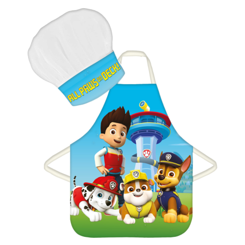 Paw Patrol, Mancs Őrjárat Gyerek kötény 2 darabos szettAnyaga: 100% poliészterSzett tartalma:- 1 db kötény- 1 db kuktasapkaAjánlott 3-8 éves korig.Csomagolt termék, ajándéknak is kitűnő.