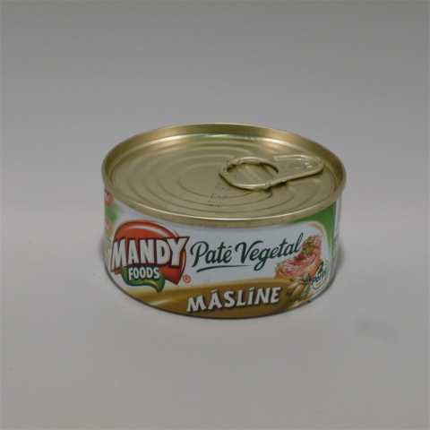 MANDY NÖVÉNYI PÁSTÉTOM OLIVÁS Májkrém ízhez megtévesztésig hasonlító ízű növényi pástétom konzerv. Összetevők:víz,napraforgónövényiolaj,szójafehérje,búza keményítő,jódozottsó,zselésítőanyag(karragén),sűrítőanyag(guar gumi),szárított zöldségek,emulgeál