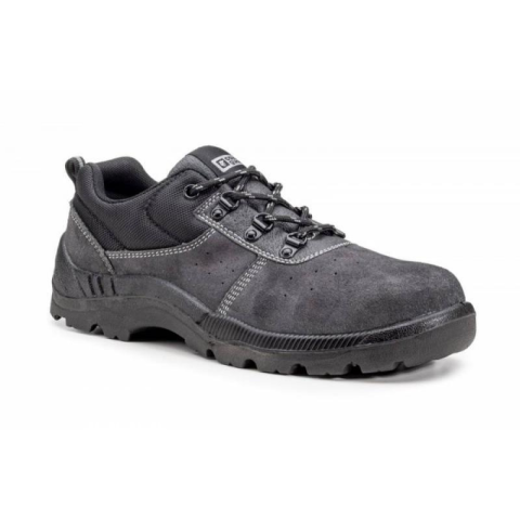 MANGANITE S1P SRC MIKROPERFORÁLT FEKETE FÉLCIPŐ_48 * kiválóan szellőző, mikro-perforált, antracit szürke velúrbőr felsőrész * antisztatikus, olajálló, emelt szinten SRC csúszásbiztosságú, kétrétegű PU talp * acél lábujjvédő leeső tárgyak- és acél tal