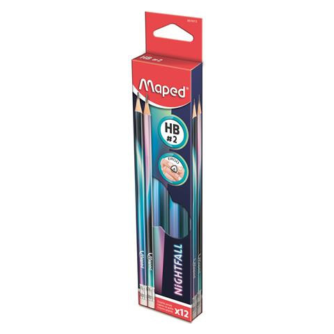 Teljes MAPED Grafitceruza radírral, HB, háromszögletű, MAPED "Nightfall", 12 darabos termékleírás