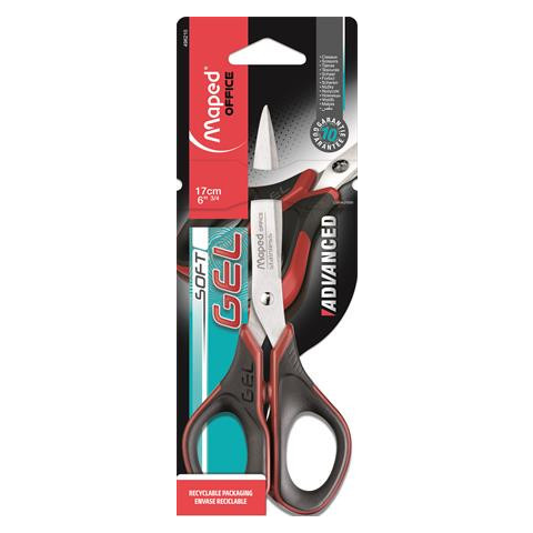 Olló, általános, 17 cm, MAPED Advanced Gel innovatív zselé jellegű borítás a fogórészen a kényelmes és ergonomikus fogás érdekében rozsdamentes acélpengével és szegeccsel illeszkedik a kéz vonalára 10 év garancia Gyártó/első EU forgalmazó elérhetőség