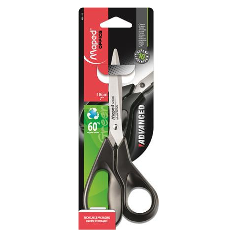 Olló, irodai, 21 cm, MAPED Advanced Green ergonomikus kialakítás, illeszkedik a kéz vonalára rozsdamentes acélpengével és szegeccsel nyele 60%-ban újrahasznosított műanyagból készül környezetbarát csomagolás 10 év garancia Gyártó/első EU forgalmazó