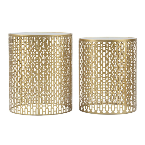 Elegáns Arany Fém Lerakóasztal Szett - Barokk Stílusban ✨ Ez a két darabból álló arany színű lerakóasztal szett tökéletes választás, ha egy kis luxust és kifinomultságot szeretnél vinni otthonodba. A barokk templomok díszítései által ihletett mintáza...