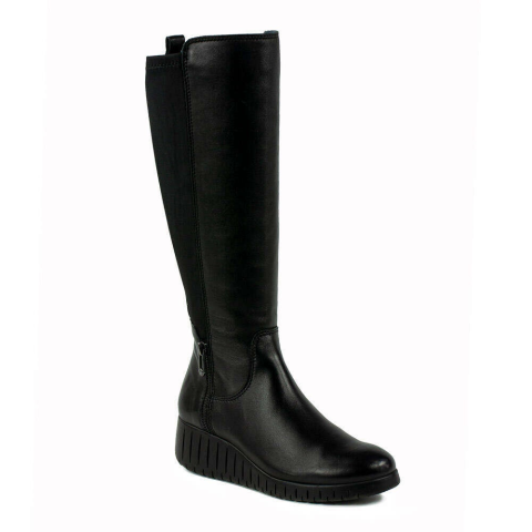 Marco Tozzi hosszúszárú csizma textilbőr felsőrésszel, Touch-It talpbetéttel, 10cm sarokmagassággal, fekete színben