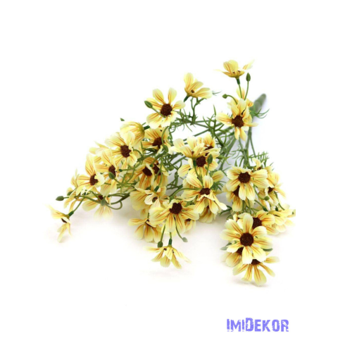 Margaréta selyem csokor műzölddel 50cm - Sárga dekorációs kellék 1 kép