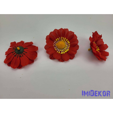 Margaréta selyemvirág fej 7 cm - Piros dekoráció 1 kép