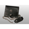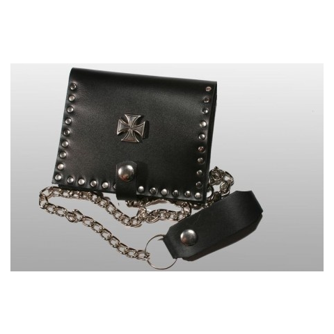 Marhabőr pénztárca fém vaskereszt dísszel. Mérete: 12,5 x 10 cm. Valódi marhabőrből. Lánccal, bőr bújtatóval, szegecsekkel.